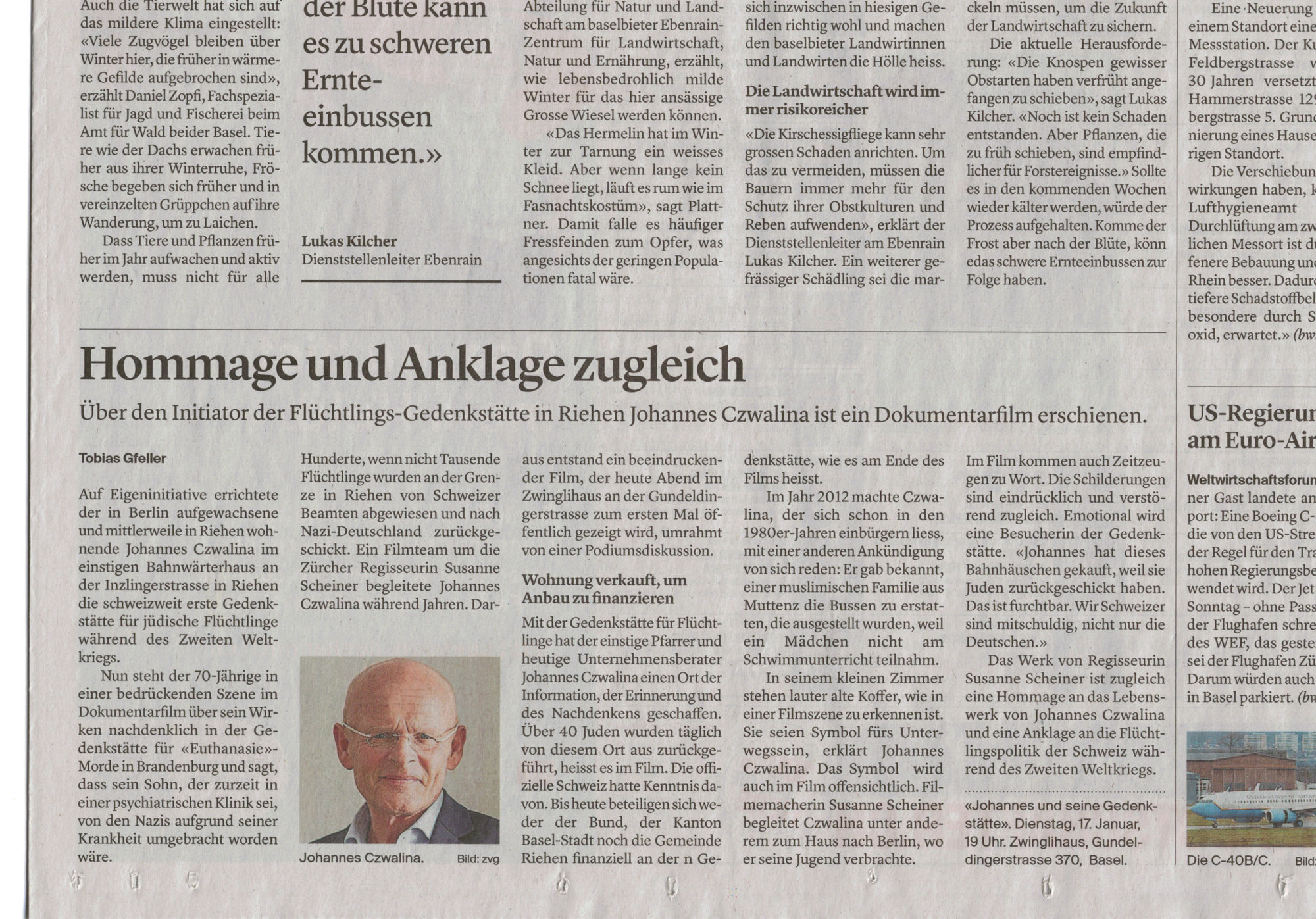 2011 erwirbt Johannes Czwalina, ein Unternehmensberater, mit grossem beeindruckendem Kundenkreis ein Bahnwärterhaus, um es als Gästehaus für auswärtige Besucher und Kunden zu nutzen. Das Haus liegt an der Linie, die von Basel nach Lörrach und anderen Orten in Süddeutschland führt, auf Schweizer Seite, in Riehen. Der Firmensitz von Czwalina befindet sich schräg gegenüber. Nichtsahnend will der Unternehmer das kleine Gebäude umbauen und einrichten. Da kommen drei alte Männer zu ihm und erzählen, was es mit dem Haus auf sich hat. Die drei lebten während des Zweiten Weltkriegs mit ihren Eltern darin und beobachteten, als damals kleine Kinder, wie Menschen in einem Schweizer Mannschaftswagen über die Grenze nach Deutschland gefahren wurden. Sie hatten damals als Kinder noch keine rechte Vorstellung von dem, was da vor sich ging, dass nämlich jüdische Flüchtlinge, die sich in die Schweiz hatten retten können, zurück nach Deutschland, d.h. zumeist in den Tod geschickt wurden. Erst später wurde ihnen bewusst, was sie da mit angesehen hatten und sie berichten nun davon. Johannes hat ein starkes soziales Gewissen; bevor er Unternehmensberater wurde, amtierte er als Pfarrer in Basel. Belastet mit der Geschichte aus frühen Berliner Tagen und nachdem er die oben erwähnten drei Männer angehört hat, beschliesst er kurzerhand, die Idee des Gästehauses zu modifizieren und in dem Bahnwärterhaus auch eine Gedenkstätte für jüdische Flüchtlinge einzurichten. Wir möchten mit dem Film die Geschichte und die Gegenwart dieser Gedenkstätte, der bisher einzigen auf Schweizer Boden, die an die jüdische Tragödie im Zweiten Weltkrieg erinnert, dokumentieren und zeigen wie ein einzelner sensibler Mensch unter grossen, auch finanziellen Opfern etwas fertiggebracht hat, was in der Schweiz weder der Bund, noch Behörden oder Institutionen für nötig erachteten.